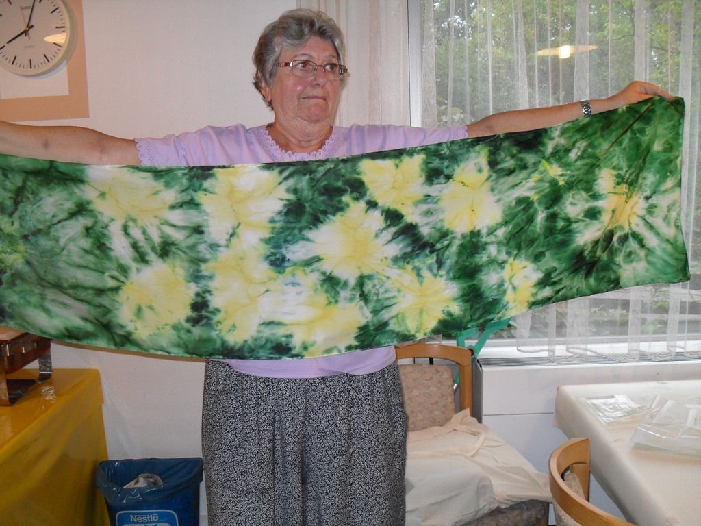 Batiken macht Spaß und gute Laune. Es erwartet Dich immer gute und überraschende Ergebnisse, wie toll das Batiktuch aussieht.
